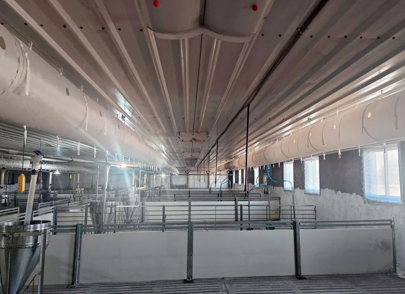 該育肥場實(shí)施了正壓通風(fēng)系統(tǒng)的升級改造,這一舉措提升了養(yǎng)豬場環(huán)境質(zhì)量和生物安全水平,減少疾病傳播的風(fēng)險(xiǎn),進(jìn)而增進(jìn)了豬只的整體健康水平和生產(chǎn)效率。