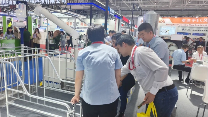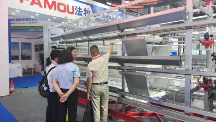 展會現(xiàn)場,青島法牧不僅全方位展示全自動化層疊式蛋雞籠養(yǎng)設(shè)備、智能飼喂系統(tǒng)、欄位系統(tǒng)、料線系統(tǒng)、環(huán)控系統(tǒng)及稱重系統(tǒng)等畜禽養(yǎng)殖設(shè)備,還帶來了多項創(chuàng)新技術(shù)和智慧養(yǎng)殖整體解決方案,吸引了眾多客戶和行業(yè)專家的關(guān)注。這些創(chuàng)新產(chǎn)品不僅提高了養(yǎng)殖效率,還保證了畜禽的健康,受到了參展商和觀眾的一致好評。